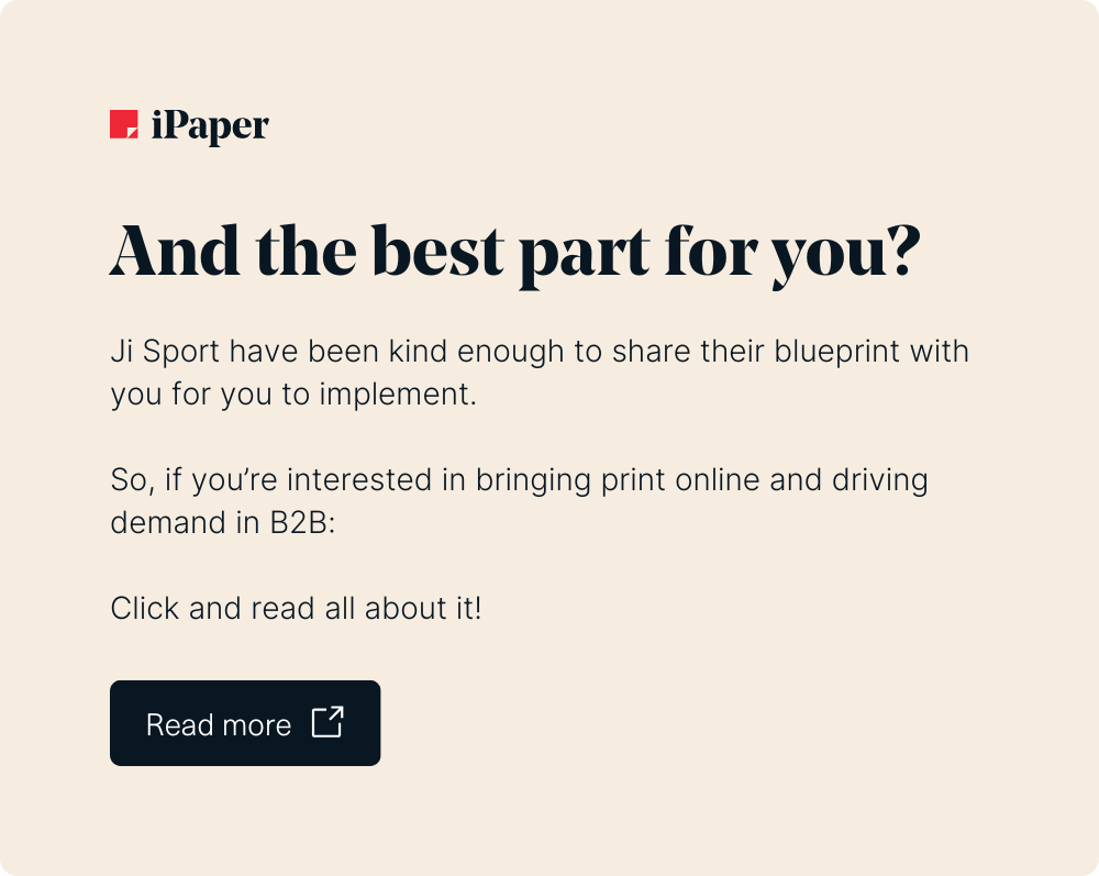 With digital catalogs, Ji Sport have now found a format that can be easily shared, can inspire and activate leads and existing customers, and finally lead to upselling and new customers.