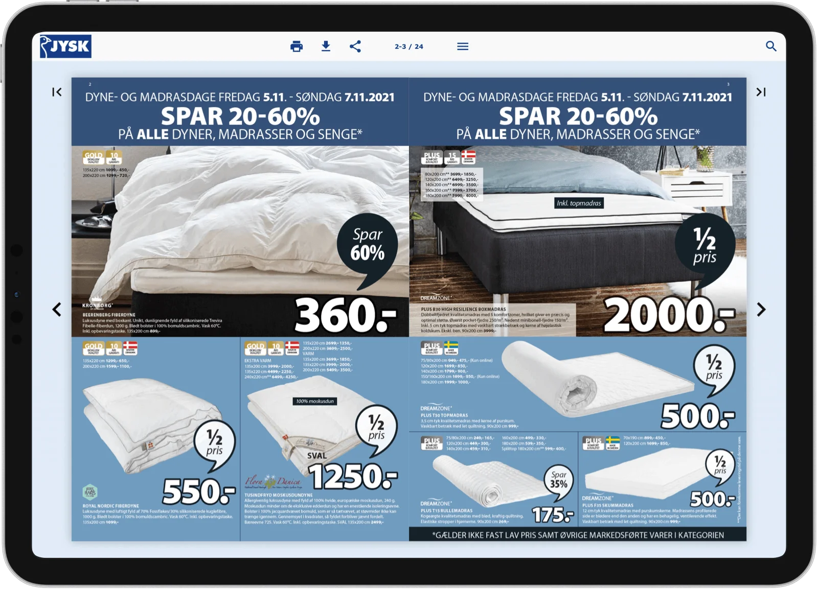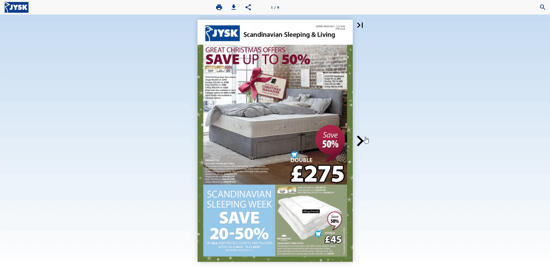 O foco principal no varejo é aumentar o número de compradores em potencial. A principal tática da JYSK é promover ofertas semanais que inspirem mais consumidores a se envolverem com suas ofertas. Ao usar seu folheto impresso on-line, a JYSK garante que está maximizando o desempenho de seus canais de distribuição on-line e aumentando o alcance.