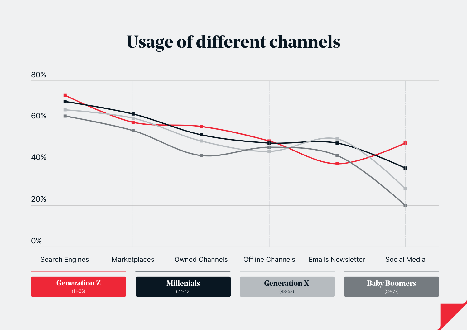 Gen Z generally uses more channels than older generations. Often they engage with brands across multiple channels, including apps, social media, and websites, which might dilute their usage of standalone digital catalogs.