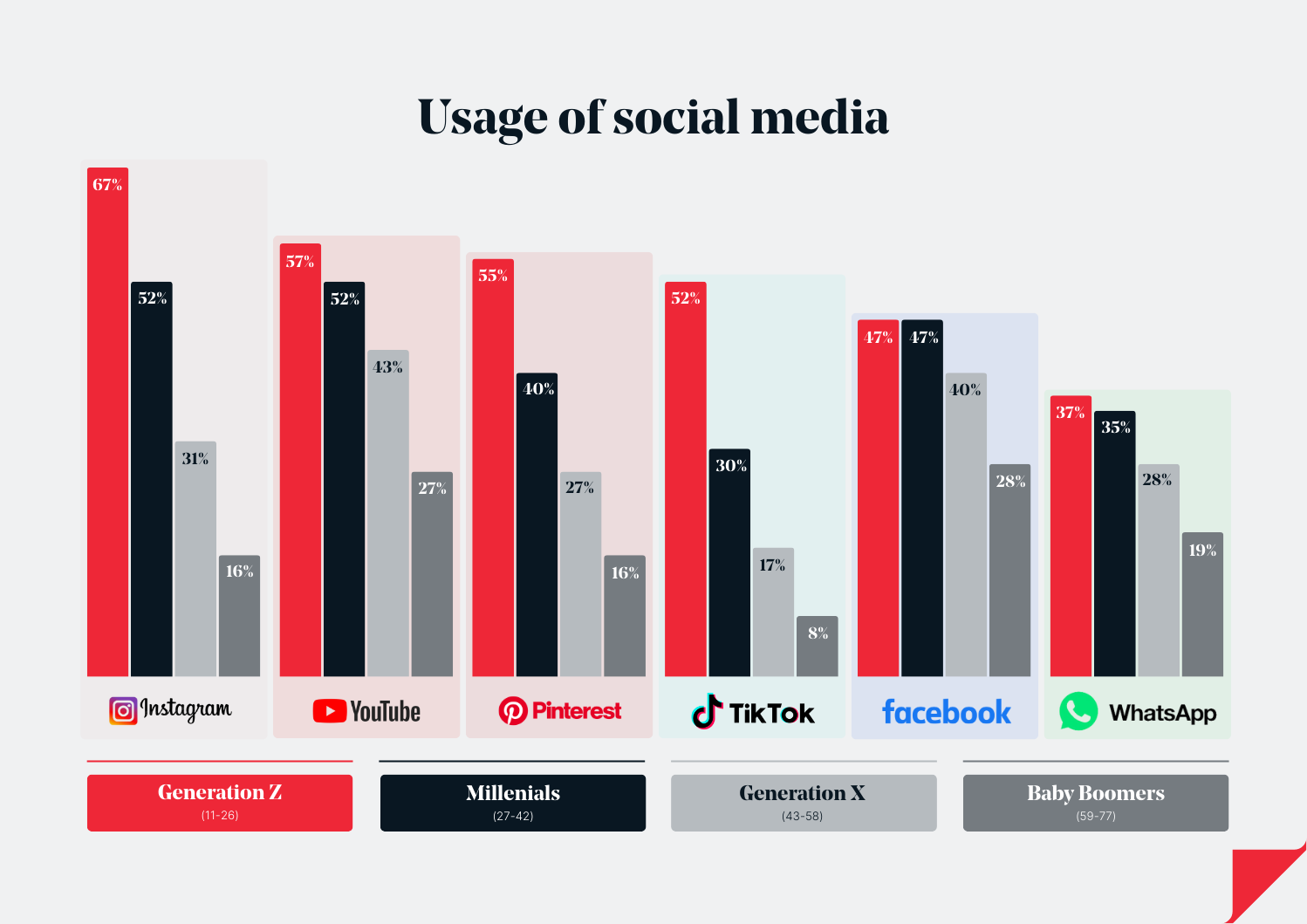 Gen Z’s usage of social media is also much more pronounced than the other generations.