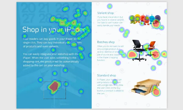 Using iPaper, you get access to heat maps, which can help you find out which parts of your catalog your customers find most engaging and click on. We also have an integration with Google Analytics that can let you know how many readers are viewing your flipbook for the first time and how many are returning for a second look.