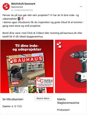 Bauhaus Denmark uses a carousel to promote its catalogs along with selected discounted products to catch shoppers' eyes.