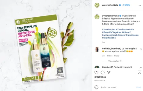 Yves Rocher Italia posts its latest catalogs across its owned channels. This keeps fans up to date and excited to engage.